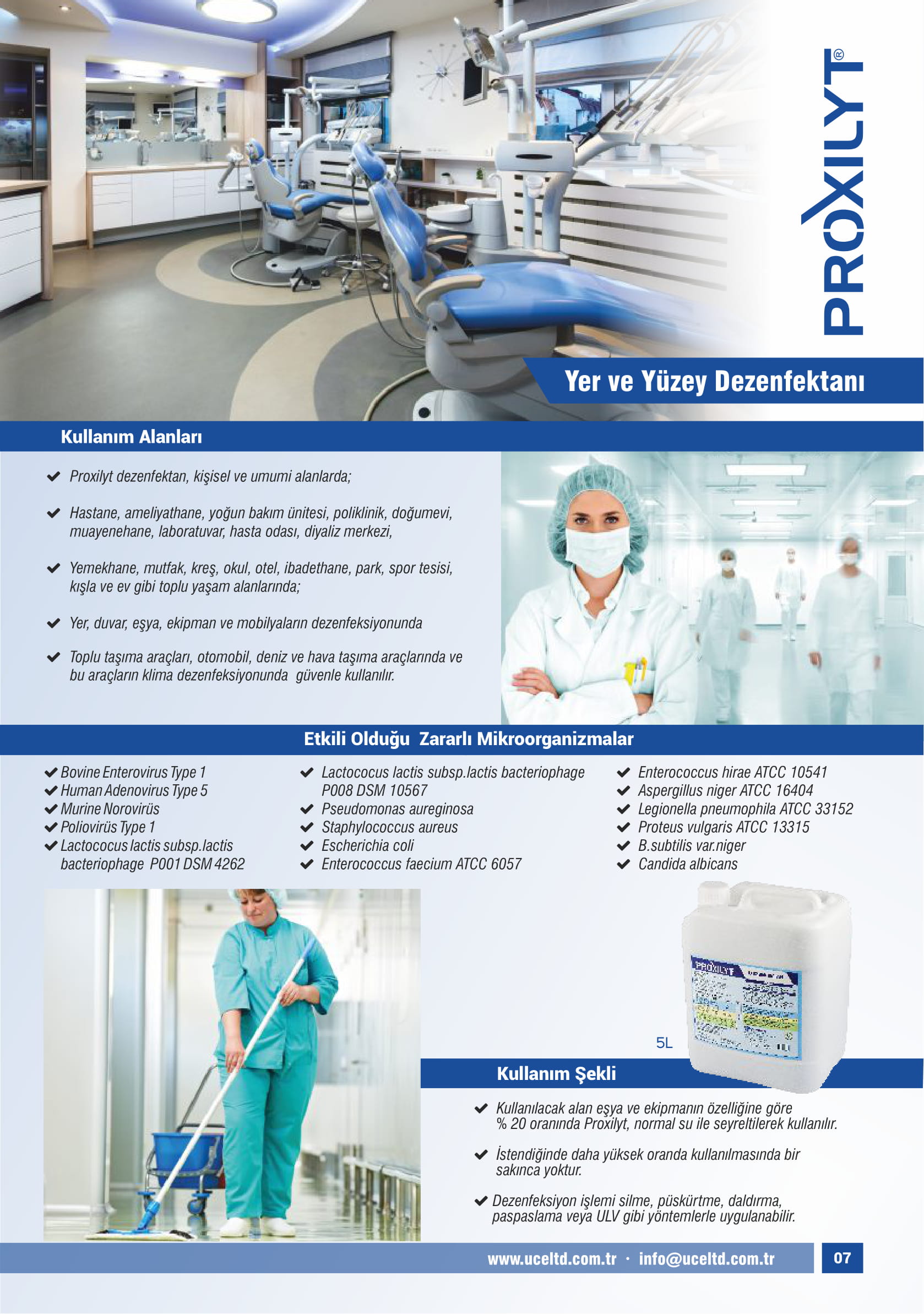 Proxilyt dezenfektan, kişisel ve umumi alanlarda;