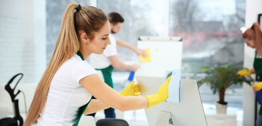 Ofisin büyüklüğüne göre belli sayıda yarı-zamanlı çalışan temizlik elemanımız gelir.
